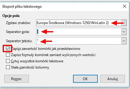Tworząc plik CSV dla komputerów, które korzystają z tradycyjnego Excela należy wybrać: