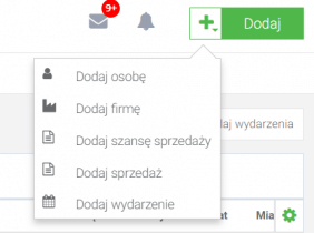 Możesz również utworzyć nowe Wydarzenie z poziomu dowolnego modułu. Wystarczy kliknąć przycisk + w prawym górnym rogu.